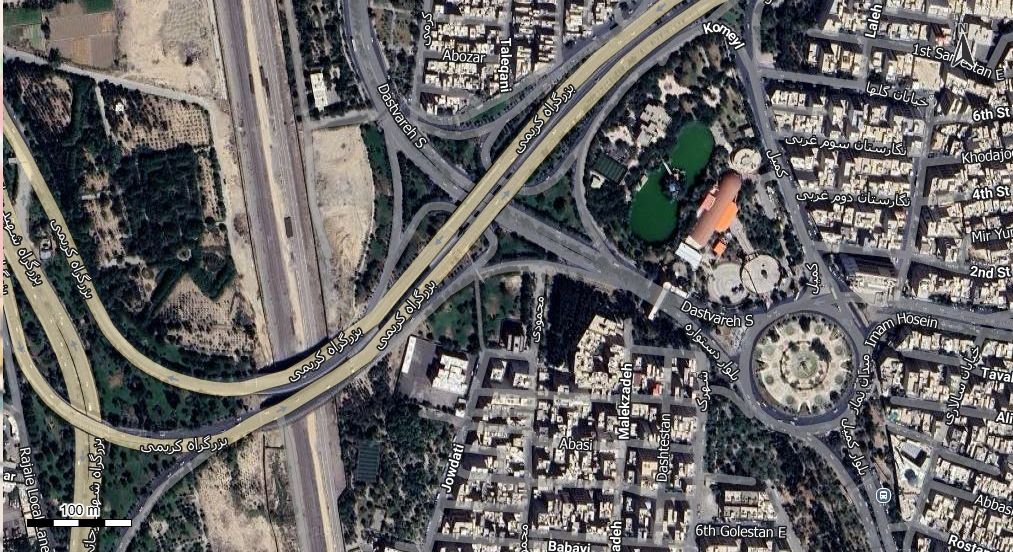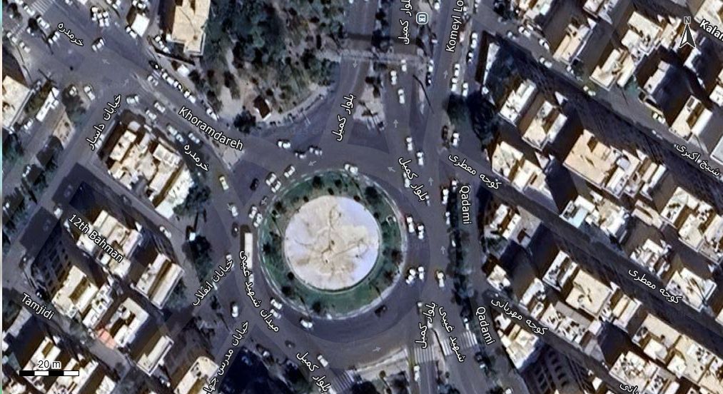 نقشه با تصویر ماهواره ای منطقه ۲۰ تهران در اتوکد با مختصات UTM
