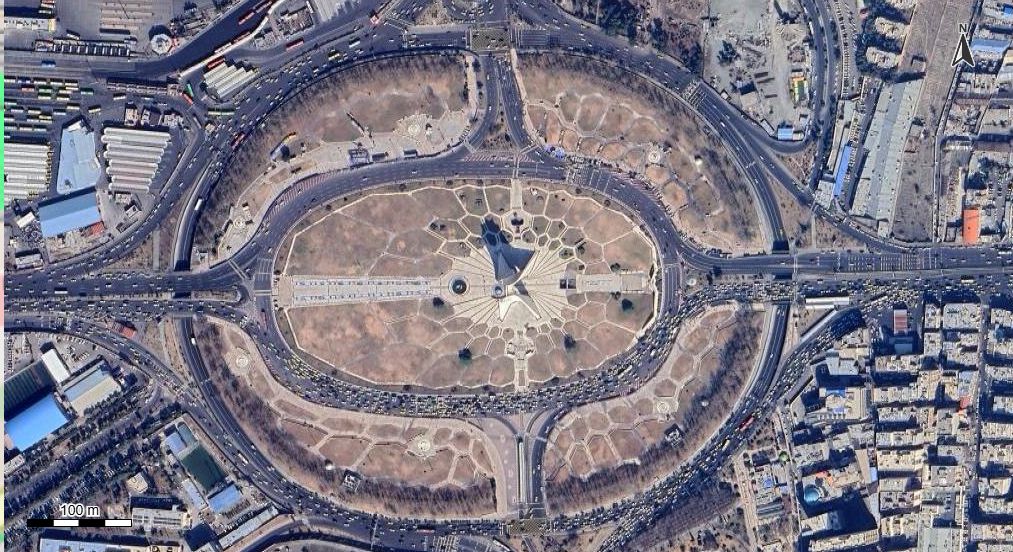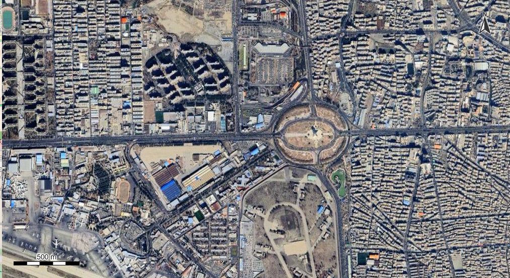 نقشه همراه با تصویر هوایی ماهواره ای شهر تهران در اتوکد با مختصات UTM