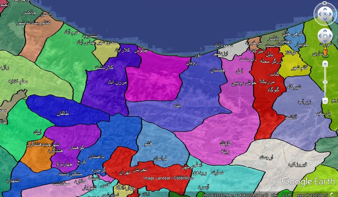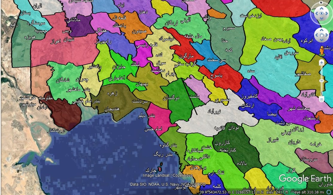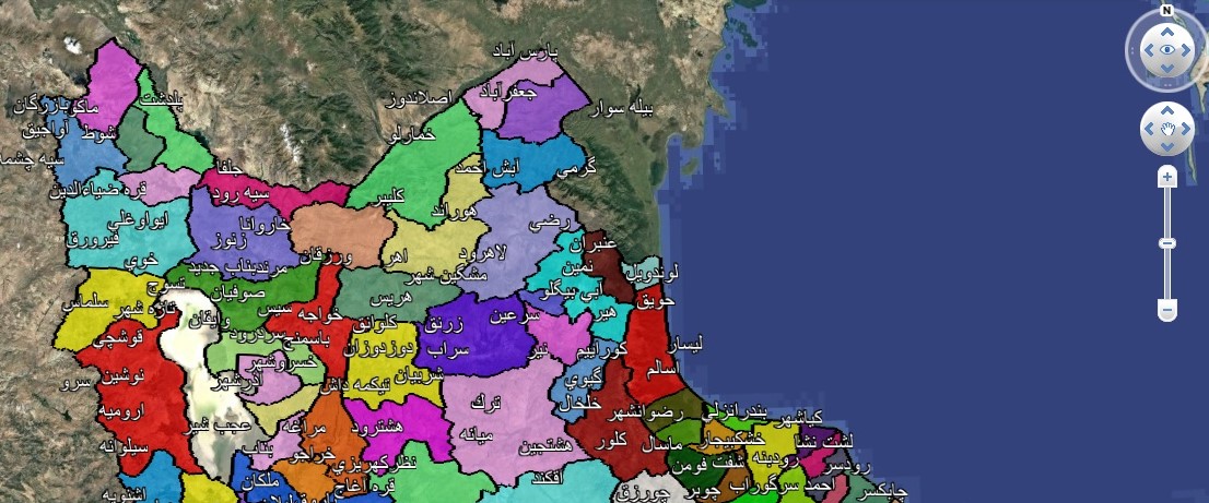 نقشه شهرهای ایران در گوگل ارث قابل استفاده در موبایل و لب تاپ با مرزبندی رنگی مناسب یرای عموم و خصوصا مهندسین