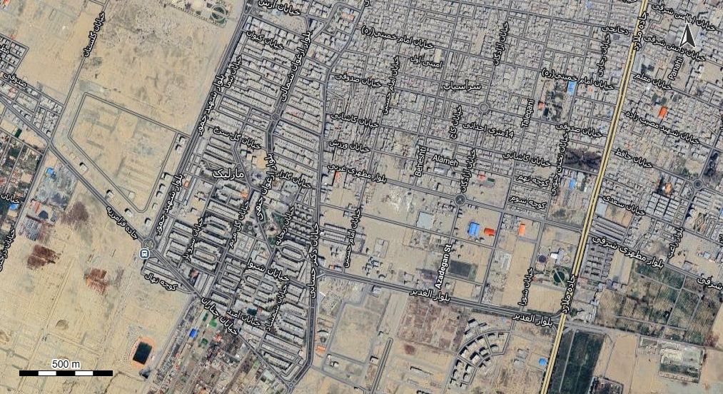 نقشه با تصویر هوایی - ماهواره ای شهر سرآسیاب و مارلیک در اتوکد با مختصات UTM