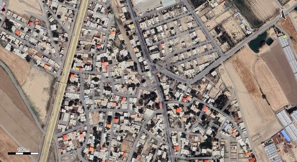 نقشه با تصویر هوایی - ماهواره ای شهر کریم آباد در اتوکد با مختصات UTM