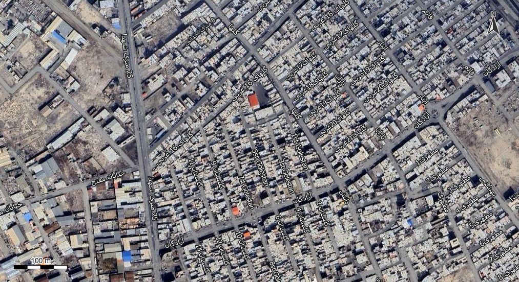 نقشه با تصویر هوایی - ماهواره ای شهر میمون آباد در اتوکد با مختصات UTM