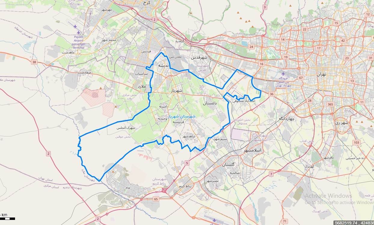نقشه با تصویر هوایی ماهواره ای شهر شهریار در اتوکد با مختصات UTM