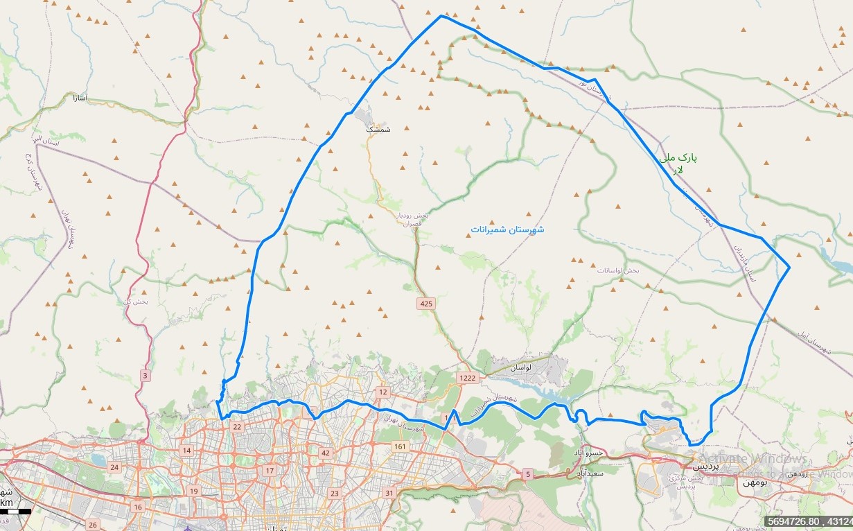 نقشه همراه با تصویر هوایی ماهواره ای شهر شمیرانات در اتوکد با مختصات UTM
