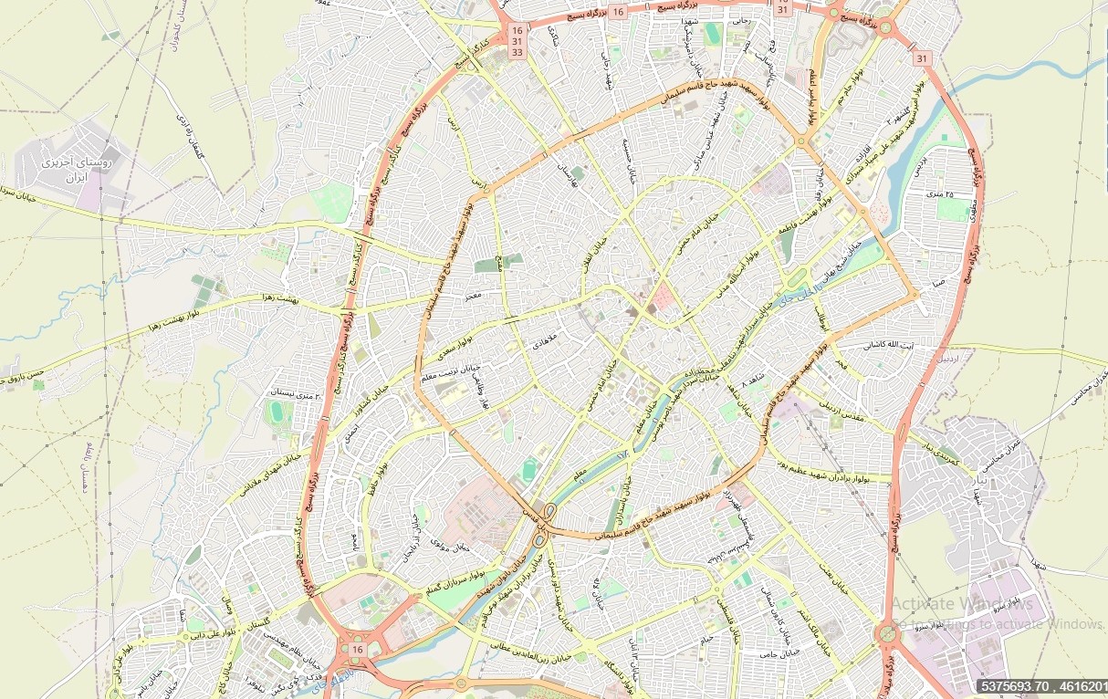 نقشه همراه با تصویر هوایی ماهواره ای شهر اردبیل در اتوکد با مختصات UTM