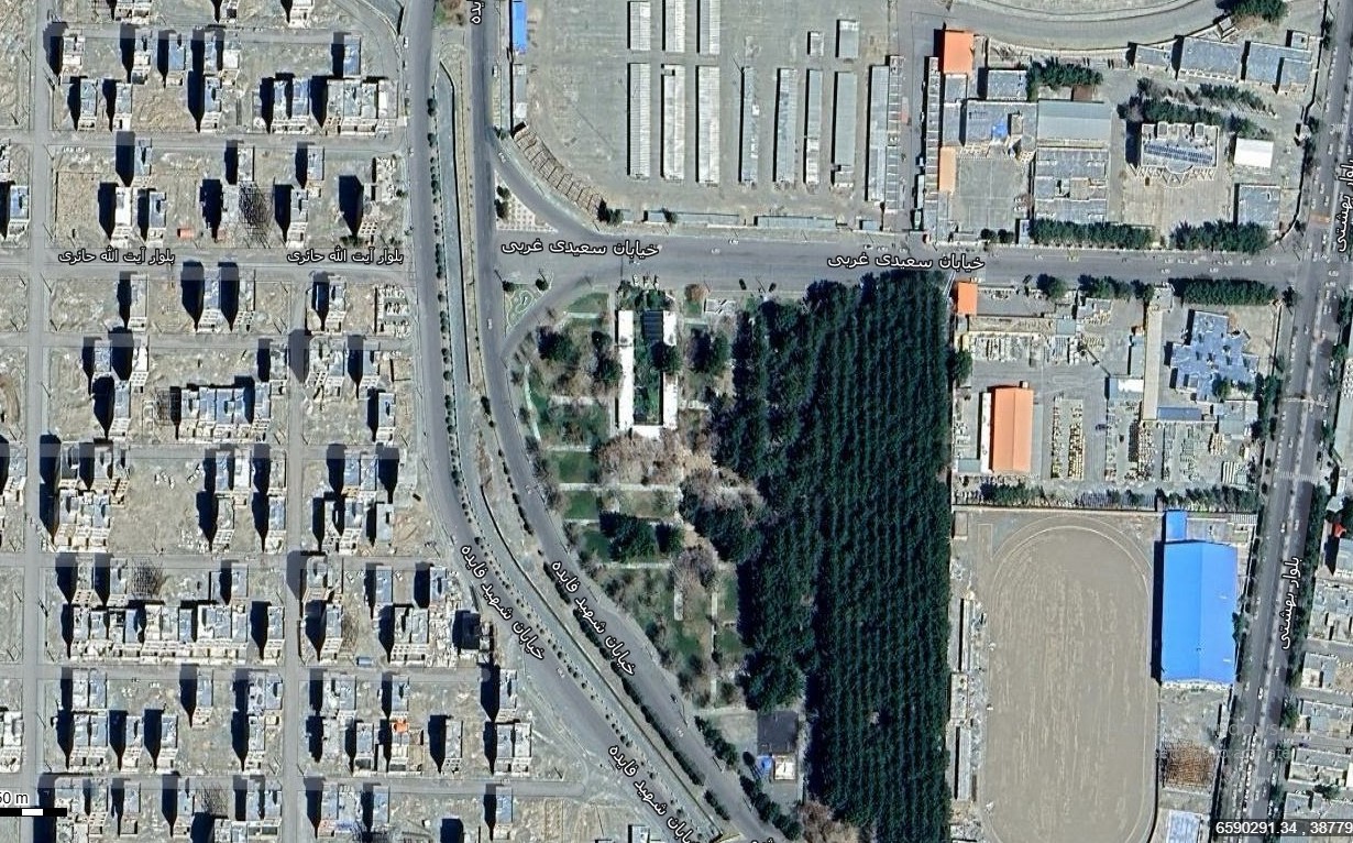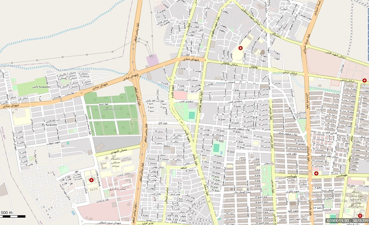 نقشه همراه با تصویر هوایی ماهواره ای شهر بیرجند در اتوکد با مختصات UTM