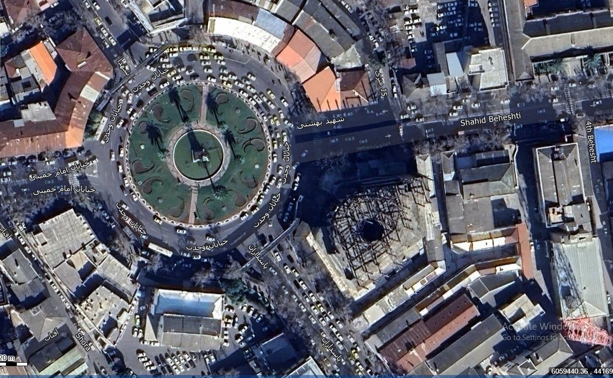 نقشه همراه با تصویر هوایی ماهواره ای شهر گرگان در اتوکد با مختصات UTM