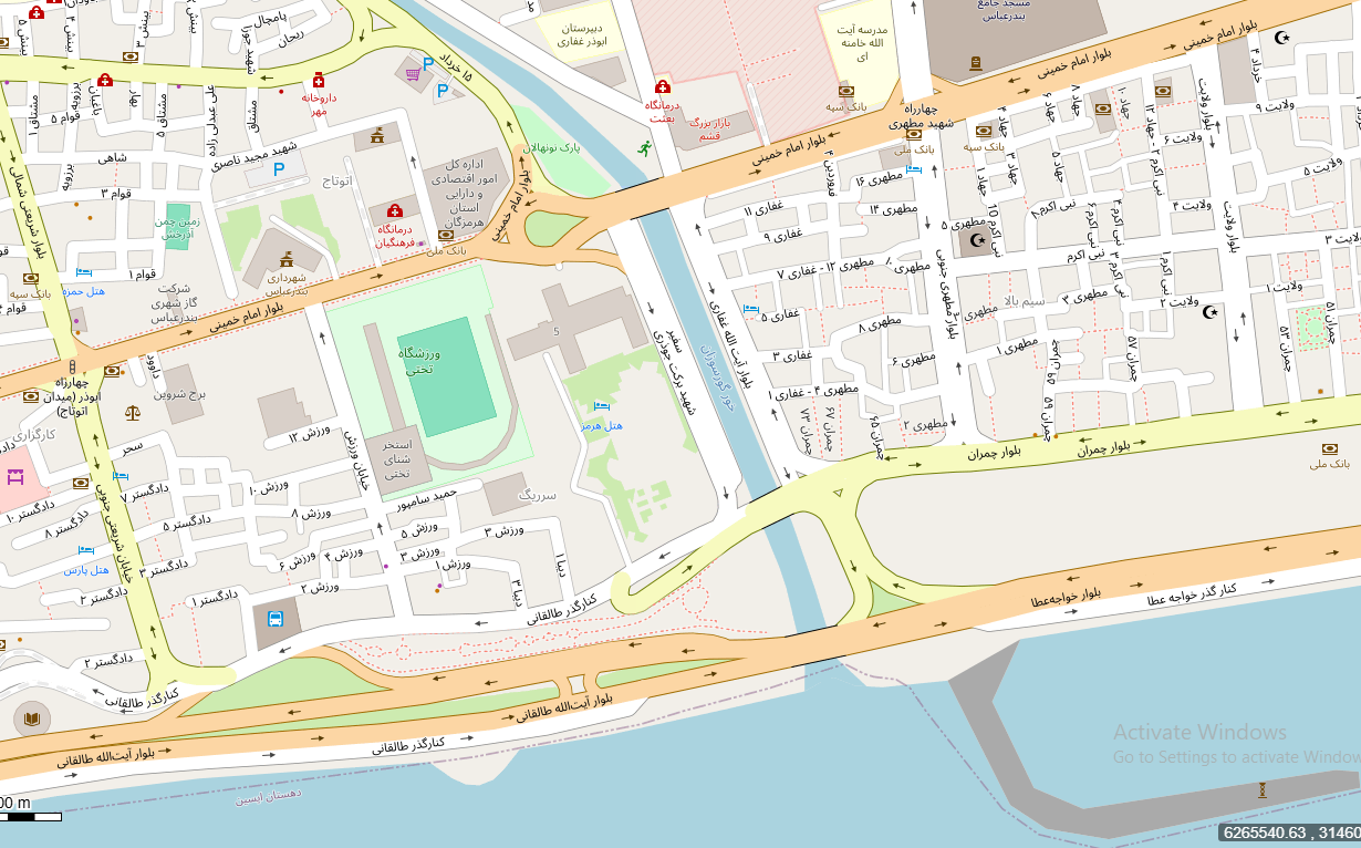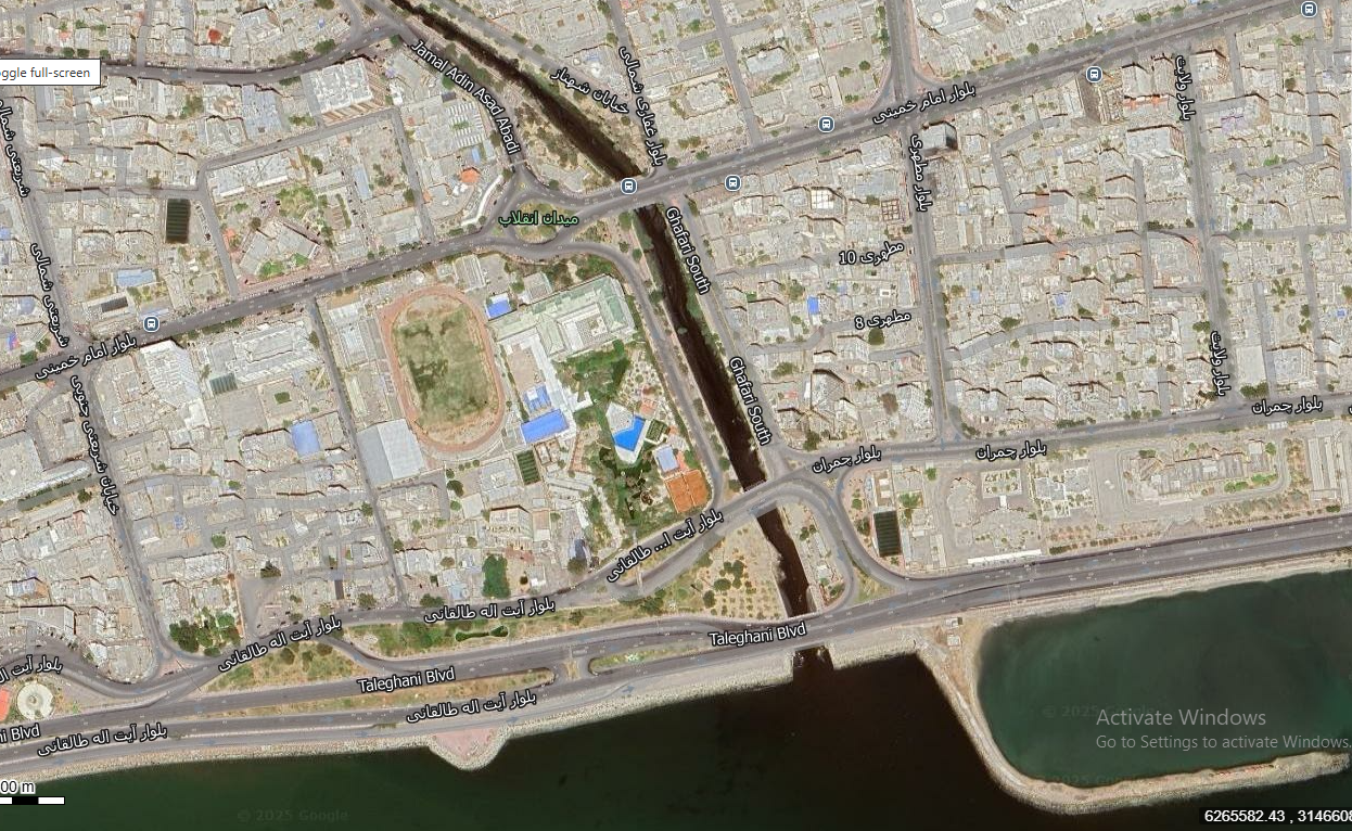 نقشه همراه با تصویر هوایی ماهواره ای شهر بندرعباس در اتوکد با مختصات UTM